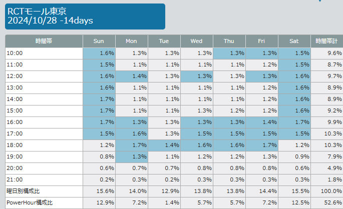 各フロア別の客数分析・回遊率・購買転換率の時系列分析